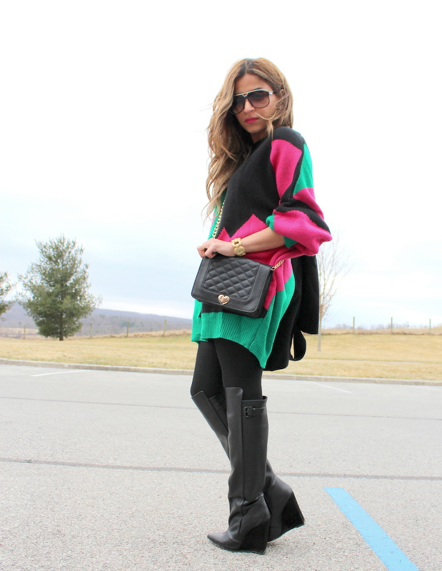 One of my favorite trends is Color Blocking . It's so fun , bright and so 80's . And as I failed to find the perfect color Block coat I decided to go for the perfect color block sweater ! I got this one from Romwe last year and still love how cozy and comfy it is . I can wear it as a sweater or as a dress ( this is the advantage of being petit some times :p ) . Once again you see me rocking my favorite boots for this winter and I can't get enough !!!